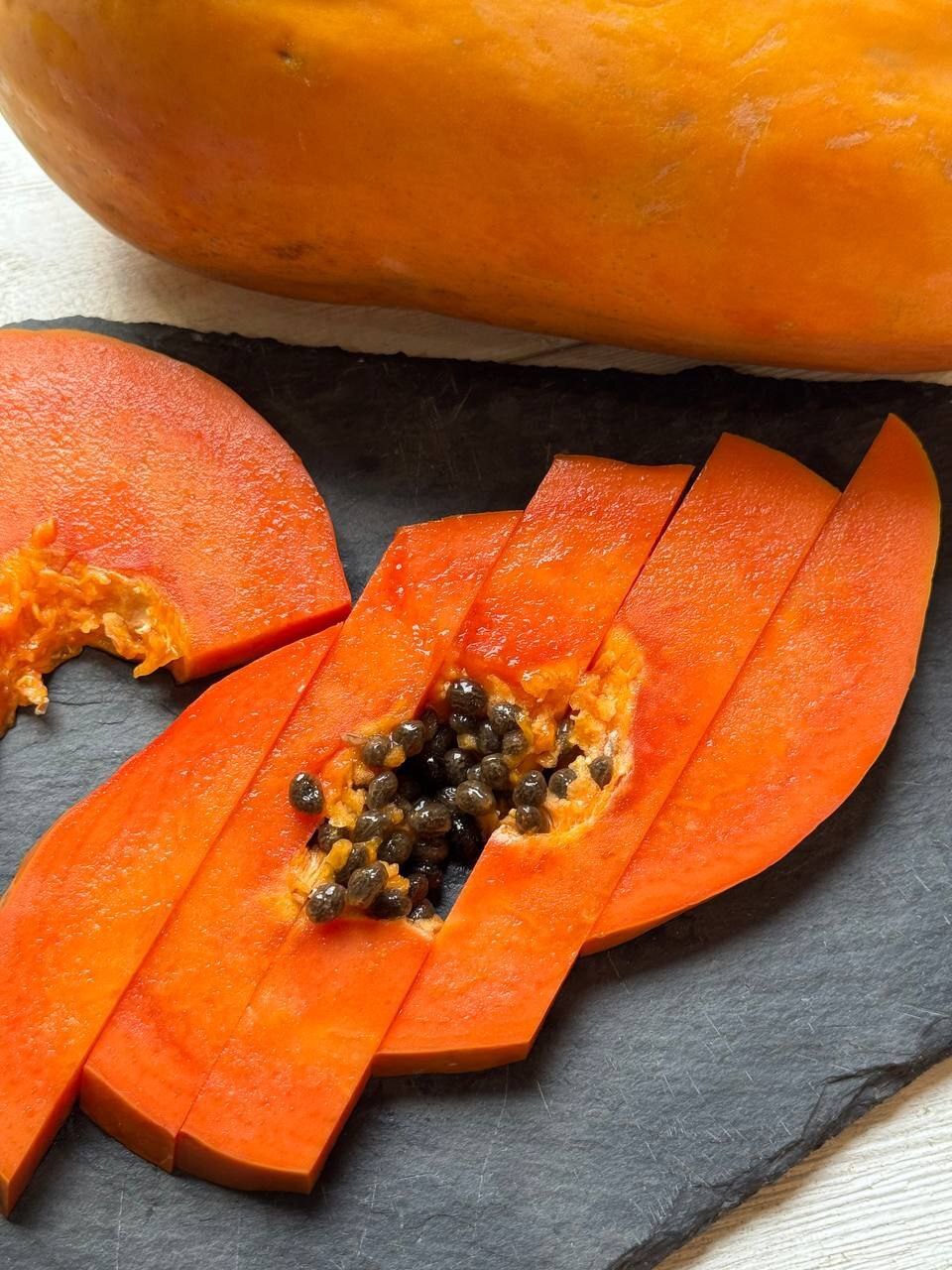 Вкус: очень сочная, сладкая с ноткой дыни мякоть. Внутри маленькая несъедобная косточка.